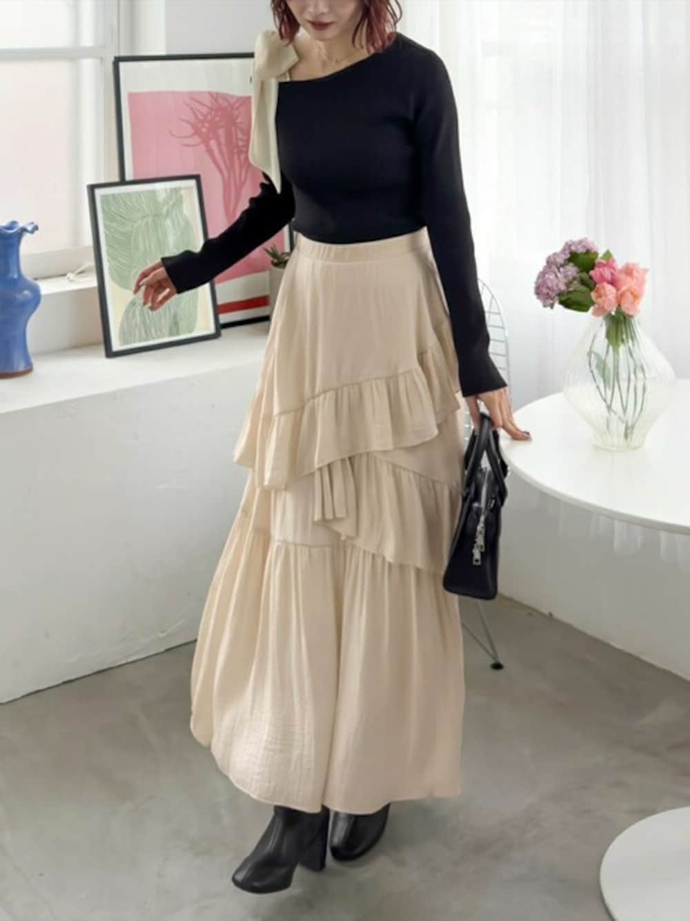 clear(クリア)(clear)のニット/セーター「肩リボンワンショルニットトップス[大人フェミニン スタイルアップ]」を使ったコーディネート