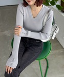 Vネックなのでデコルテラインを綺麗に見せてくれるニットトップスです。 袖のさりげないシルバーのハートボタンが可愛いポイントです! カジュアルなコーディネートでも可愛らしさが表現できるアイテムになっています♡