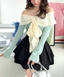 clear(クリア)(clear)のニット/セーター「オフショルニットリボントップス[スタイルアップ 大人フェミニン]≪再入荷≫」を使ったコーディネート