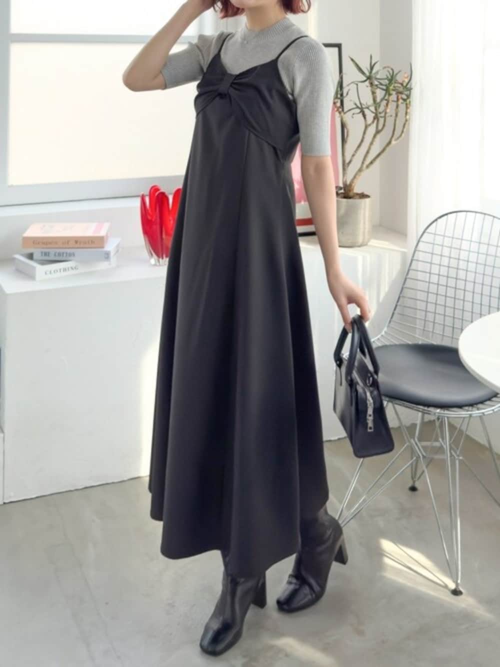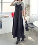 胸元のリボンデザインが可愛いキャミワンピースです。 ゆとりのあるシルエットで、体型に関係なくご着用いただけます! 肩紐はアジャスター付きで調節可能なのも嬉しいポイントです♪ ガーリーになりすぎない大人っぽいアイテムです♡