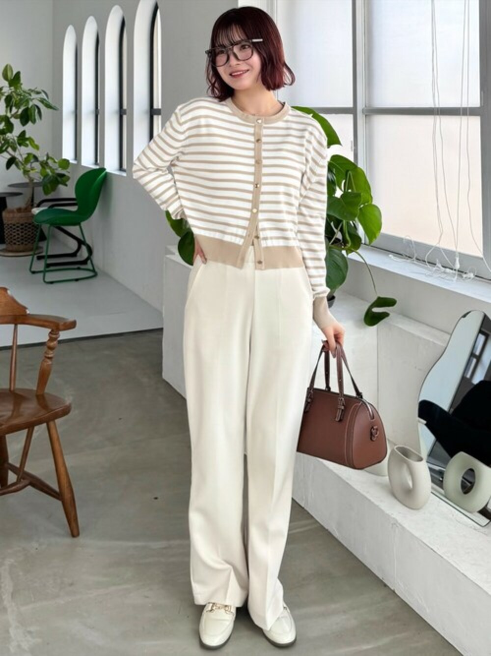 clear(クリア)(clear)のニット/セーター「ボーダーニットカーディガン[オフィスカジュアル 着回し抜群 大人 カジュアル]≪再入荷≫」を使ったコーディネート