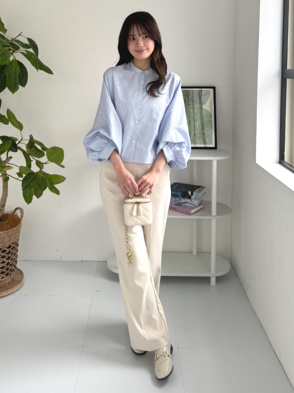 春のオフィスカジュアルスタイル。 ストライプ柄がシンプルすぎず大人っぽく見せるおすすめアイテムです♪