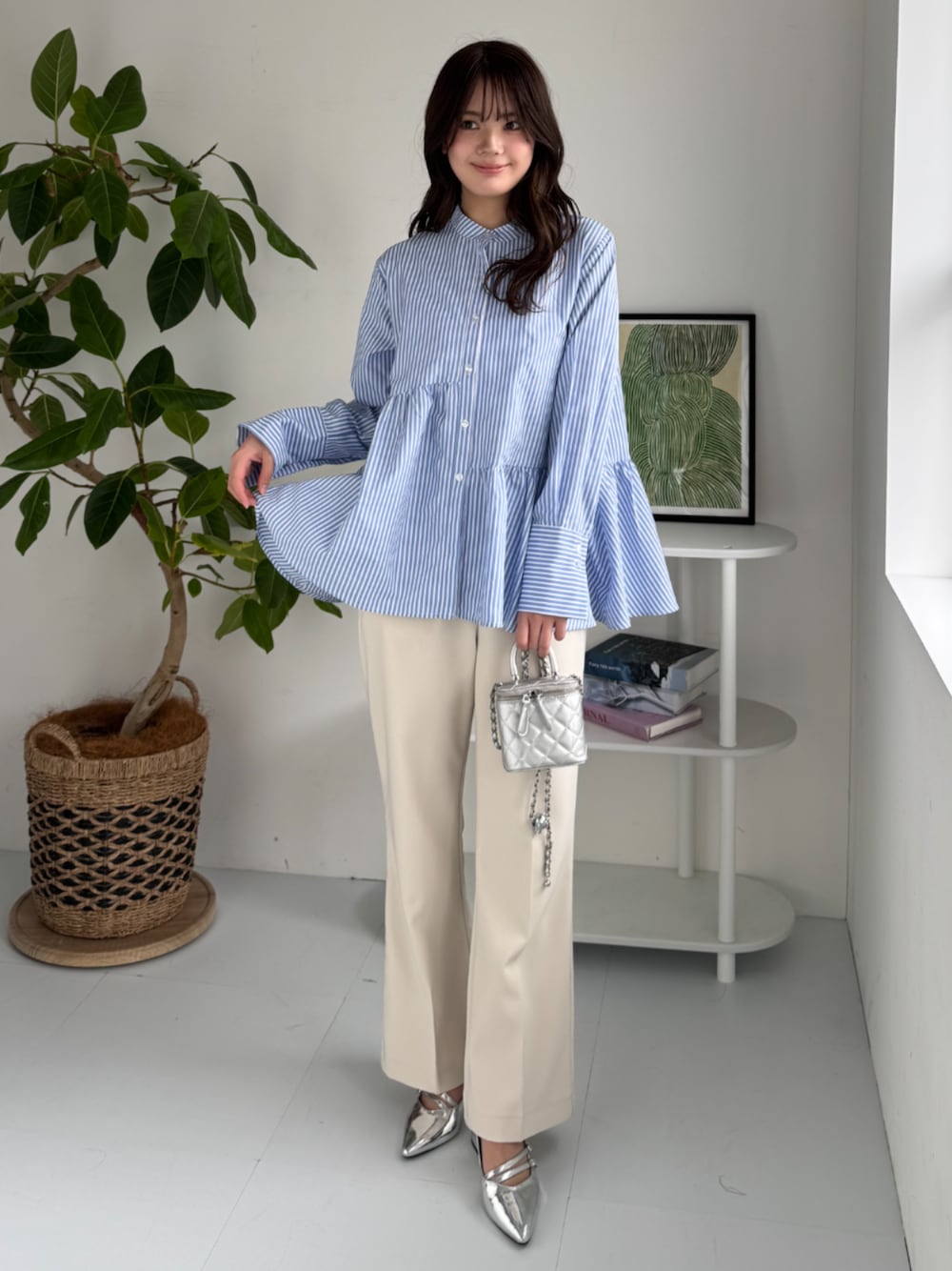 clear(クリア)(clear)のスラックス「ストレッチセミフレアパンツ [美脚シルエット スタイルアップ 脚長 オフィスカジュアルにも]≪2024AW新作≫」を使ったコーディネート