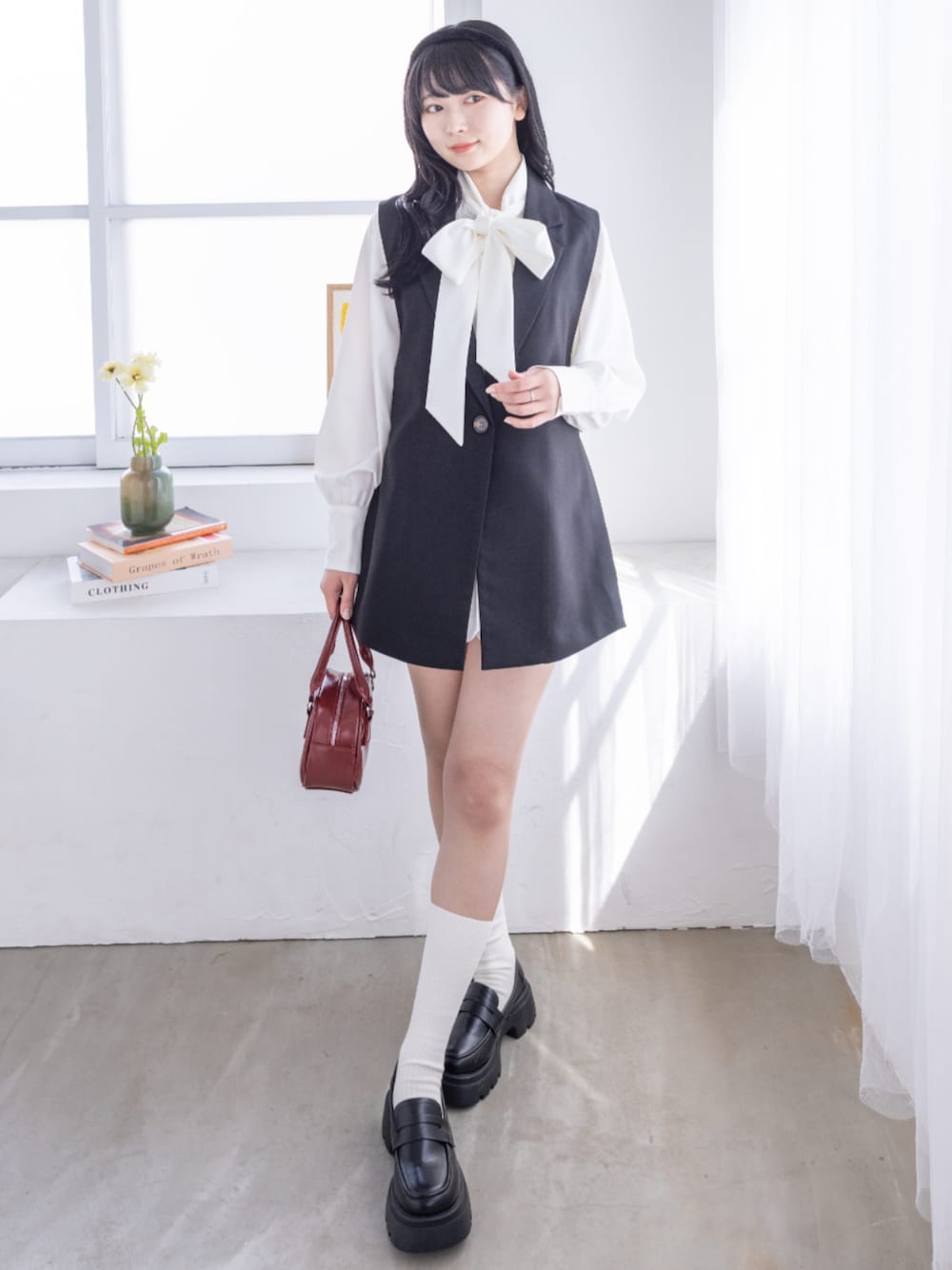 モノクロなガーリーコーデ! ガーリーだけど大人っぽさも感じさせるコーディネートです♡