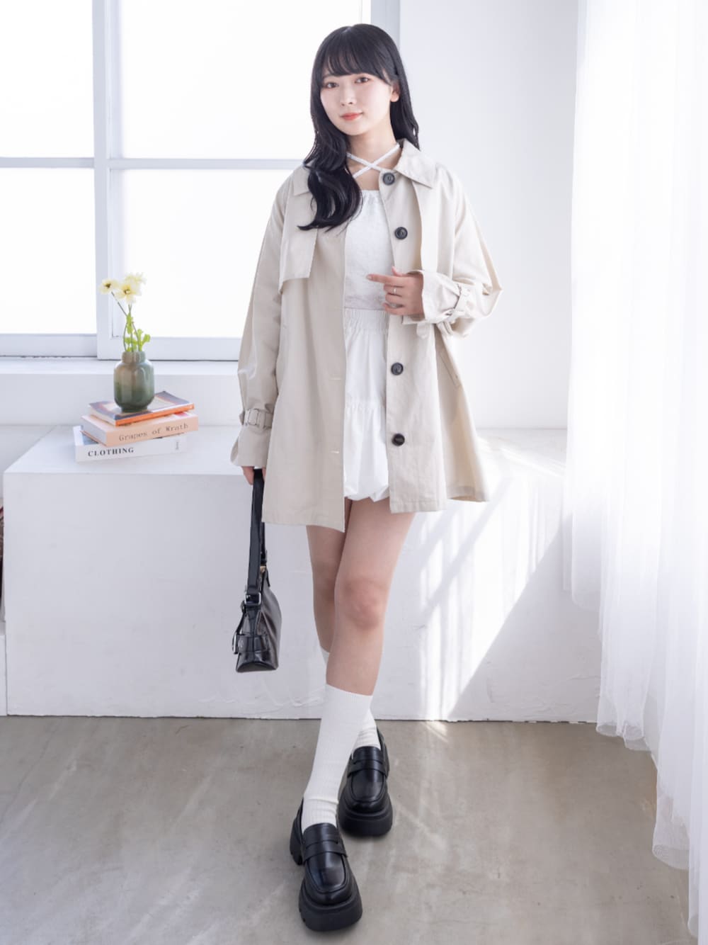 clear(クリア)(clear)のトレンチコート「≪再入荷≫Aラインミドル丈トレンチジャケット[大人 カジュアル 着回し力抜群]」を使ったコーディネート