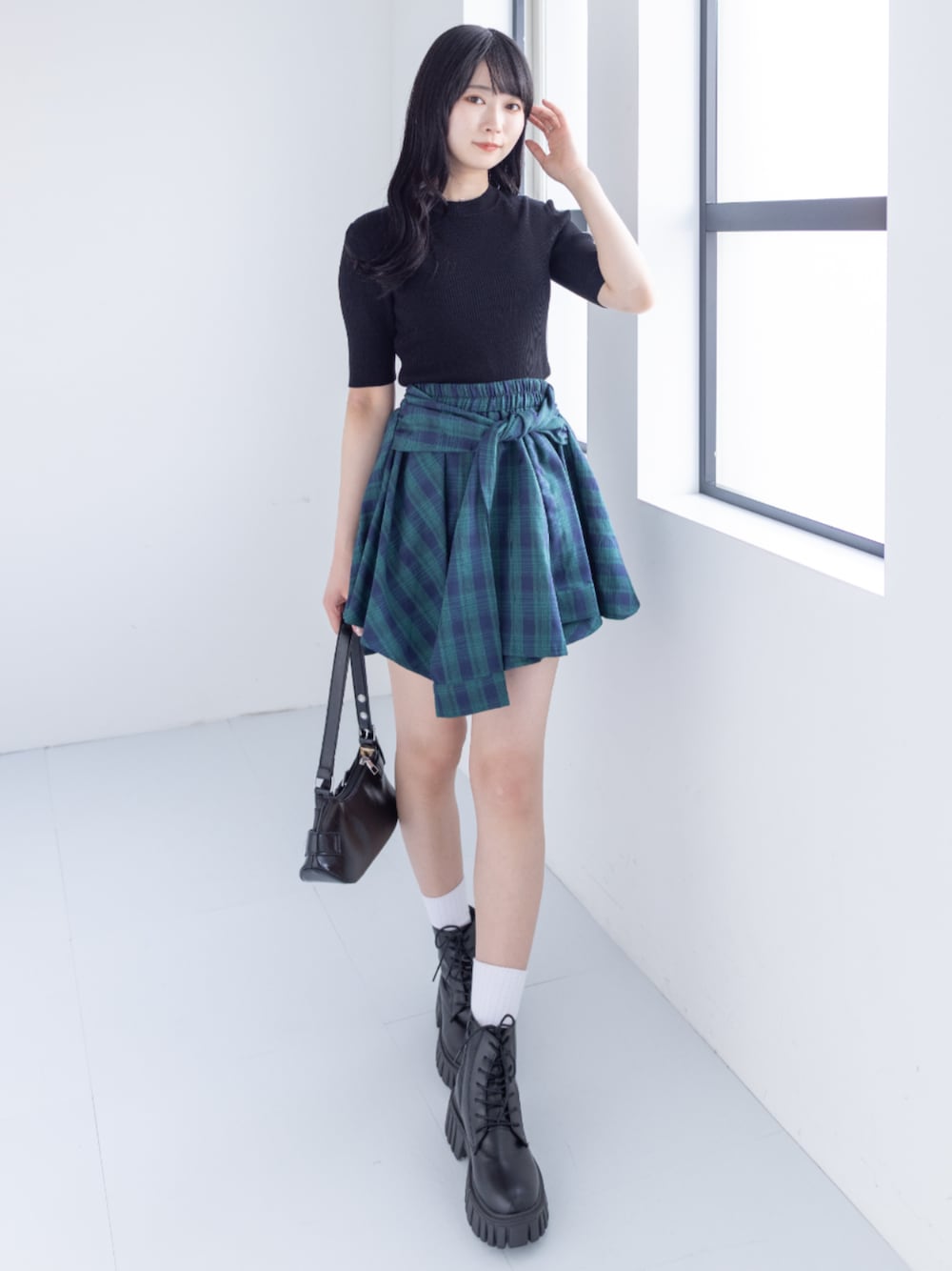チェック柄ミニスカートをポイントにした大人カジュアルコーデ♪