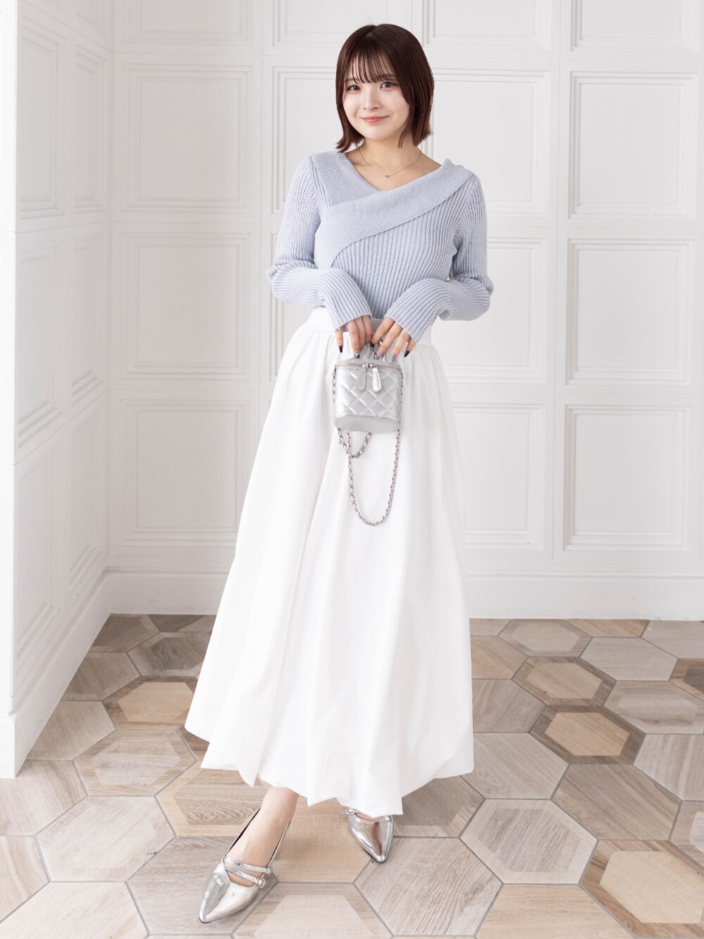 clear(クリア)(clear)のニット/セーター「アシンメトリークロスネックニットトップス[オフィスカジュアル 大人 フェミニン]≪再入荷≫」を使ったコーディネート