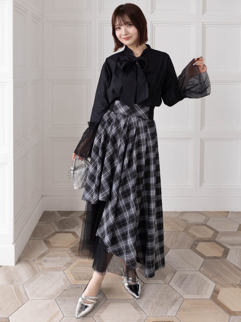 clear(クリア)(clear)のスカート「【低身長用サイズ有】無地柄アソートチュールドッキングアシンメトリースカート [大人フェミニン]≪再入荷≫」を使ったコーディネート