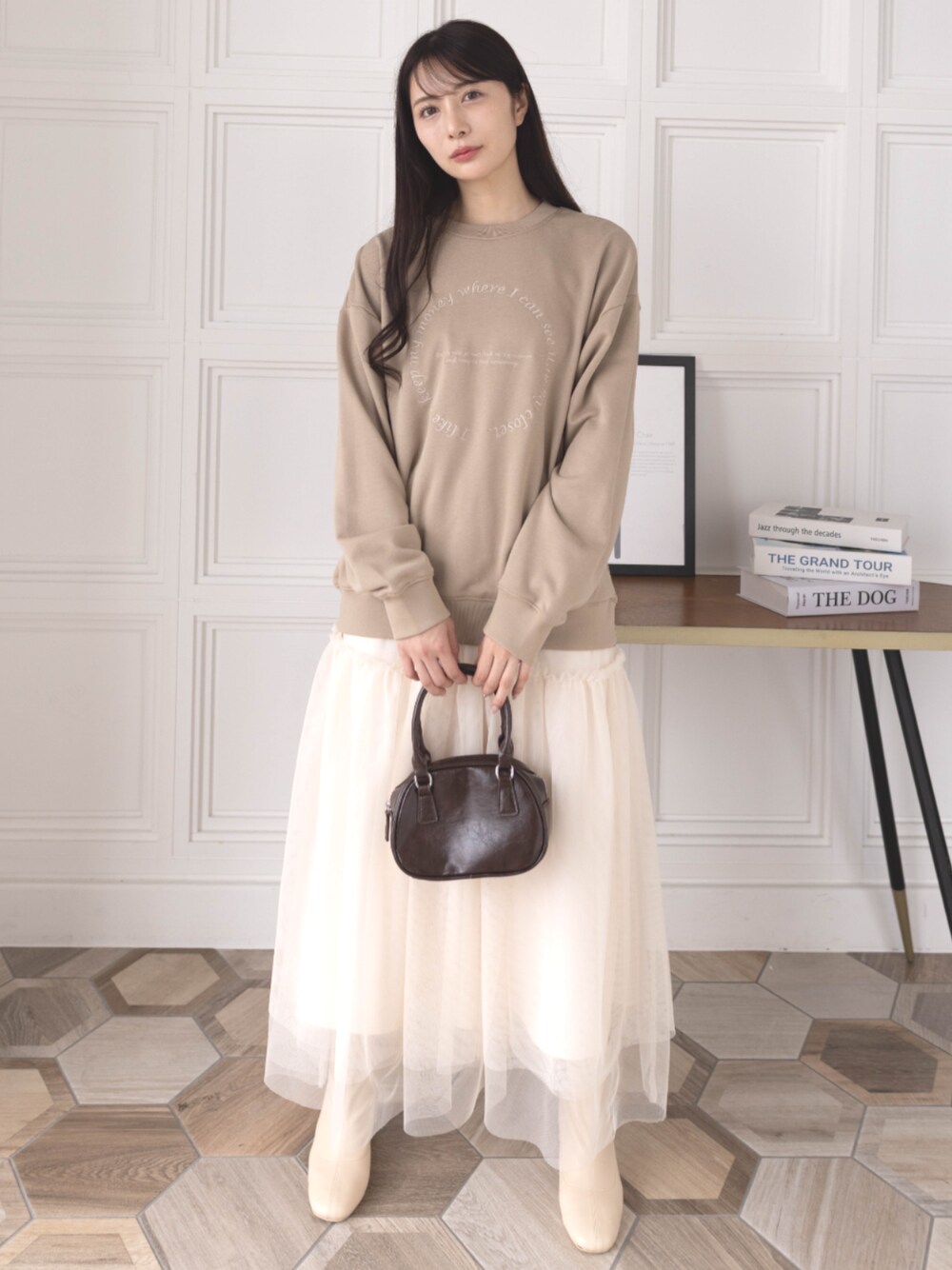 clear(クリア)(clear)のスウェット「サークル刺繍ロング丈スウェットトップス [ゆったりシルエット シンプル]≪2024AW新作≫」を使ったコーディネート