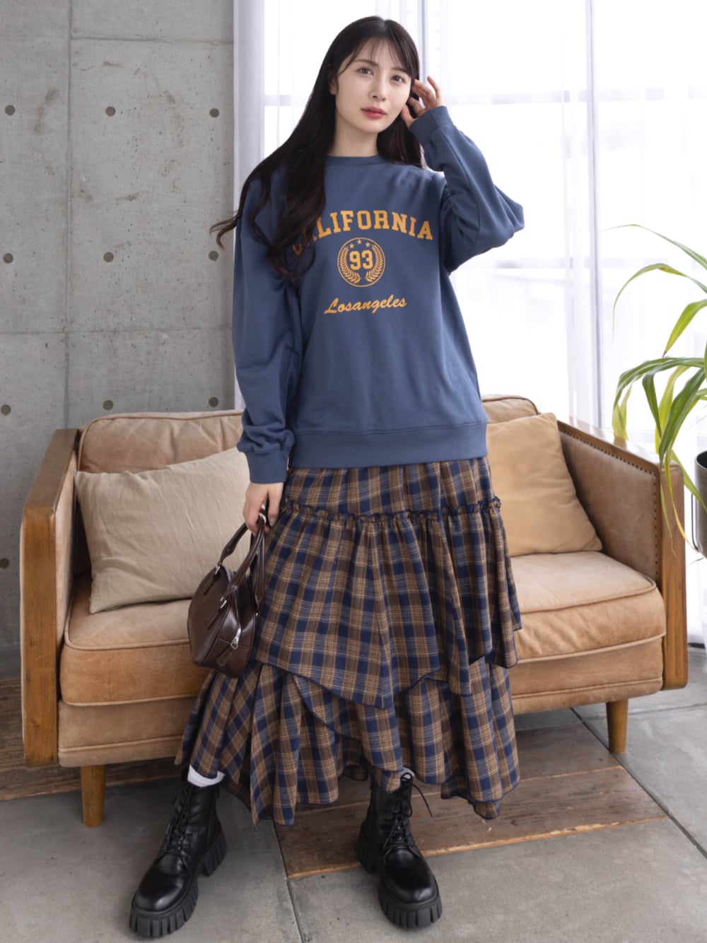 トレンドのチェック柄! 深い色を使うことでレトロな大人カジュアルコーデなります♪