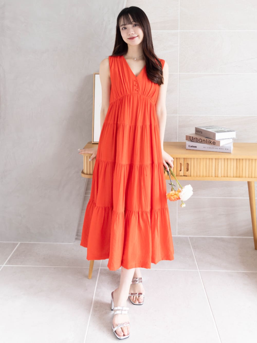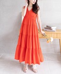 裾に向かって広がるシルエットがきれいなティアードワンピースです♪