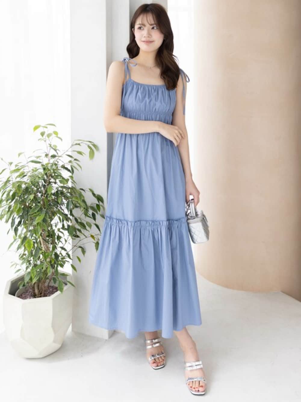 clear(クリア)(clear)のワンピース「【低身長サイズ有】肩リボンキャミワンピース [着回し力抜群 ロング丈 大人]≪SS新作≫」を使ったコーディネート