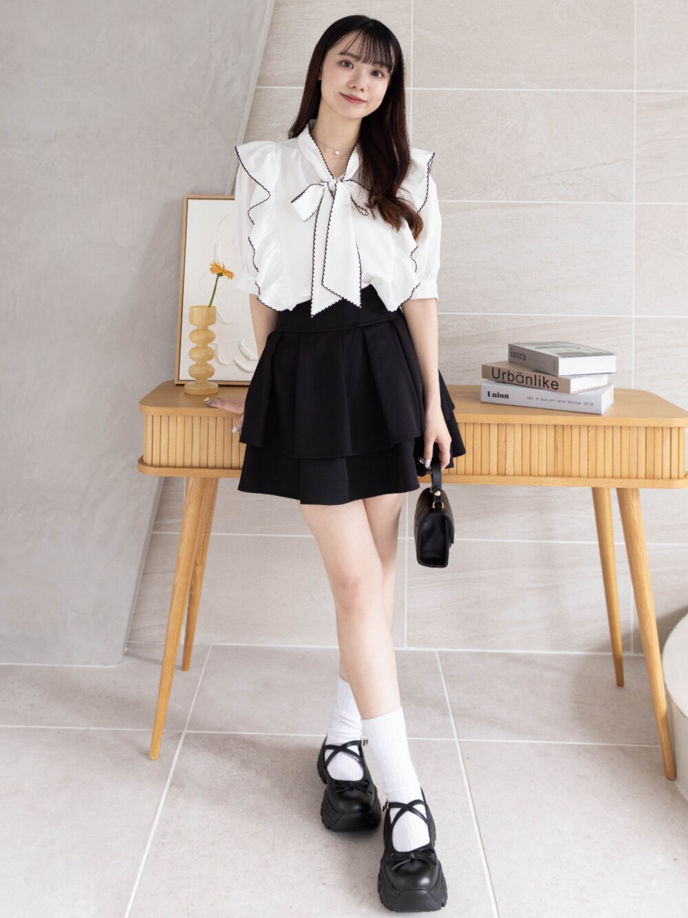 リボンとフリルで可愛く!ガーリーコーデです♡