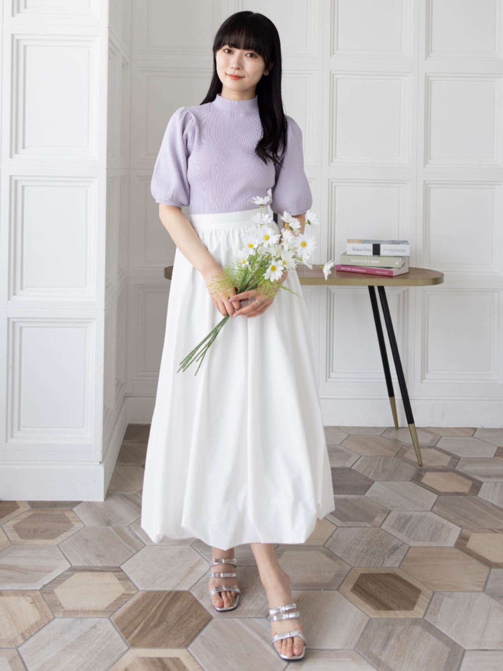 パープルカラーが女性らしい! 大人フェミニンなコーディネートです♡