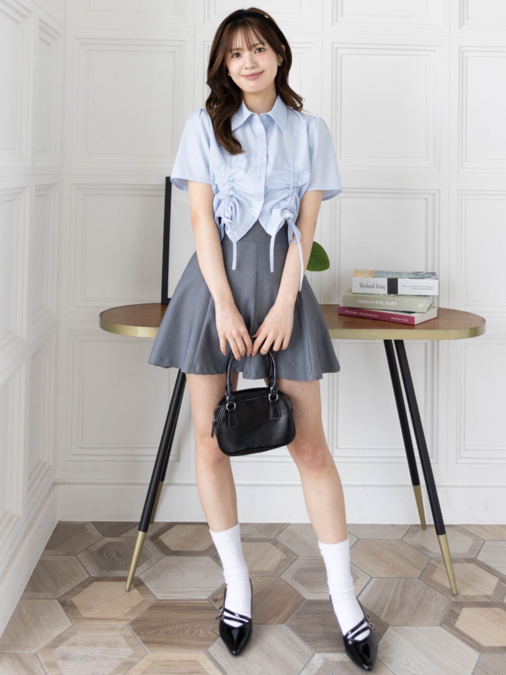シャツのドロストが可愛い♡ フレンチガーリーコーデです!
