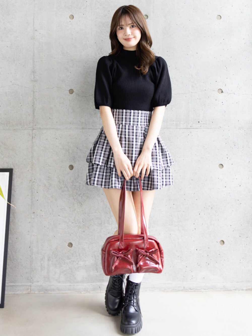 clear(クリア)(clear)のハンドバッグ「ダブルポケットリボンスクエアバッグ[ガーリー 推し活 韓国ファッション]≪2025SS新作≫」を使ったコーディネート