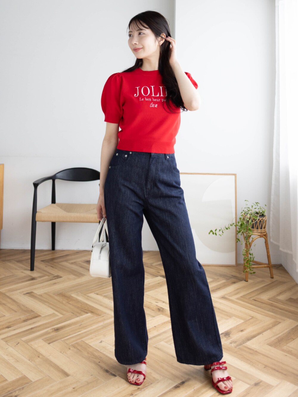 赤色が映える大人カジュアルなコーディネート