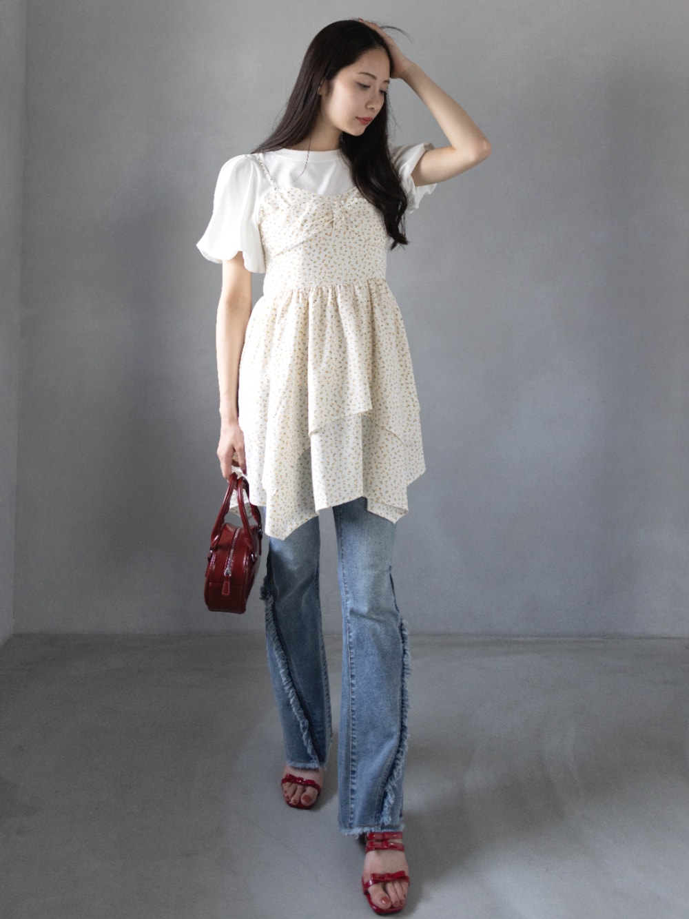 カジュアルなコーデでもキャミソールを合わせればかわいく! 大人カジュアルかわいいコーデです♡