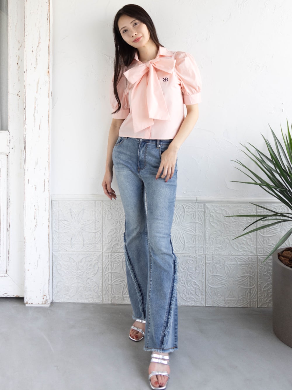 大人かわいく着こなせるピンクシャツを使ったコーディネート