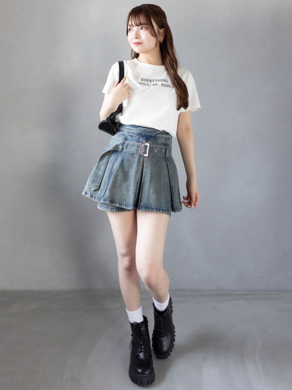 clear(クリア)(clear)のデニムスカート「レイヤード風デニムプリーツミニスカート [着回し力万能]≪SS新作≫」を使ったコーディネート