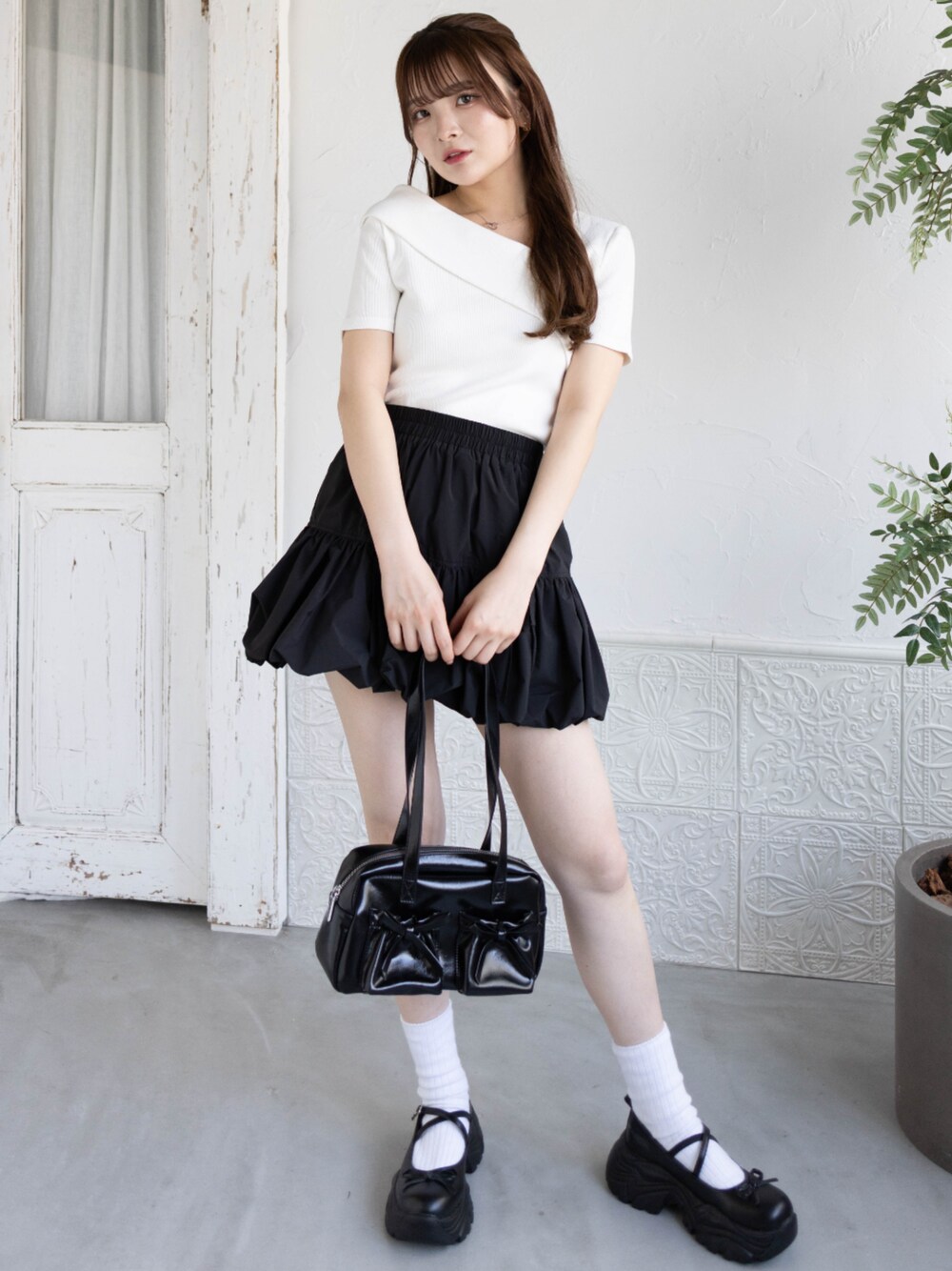 カジュアルガーリーなモノトーンコーデ