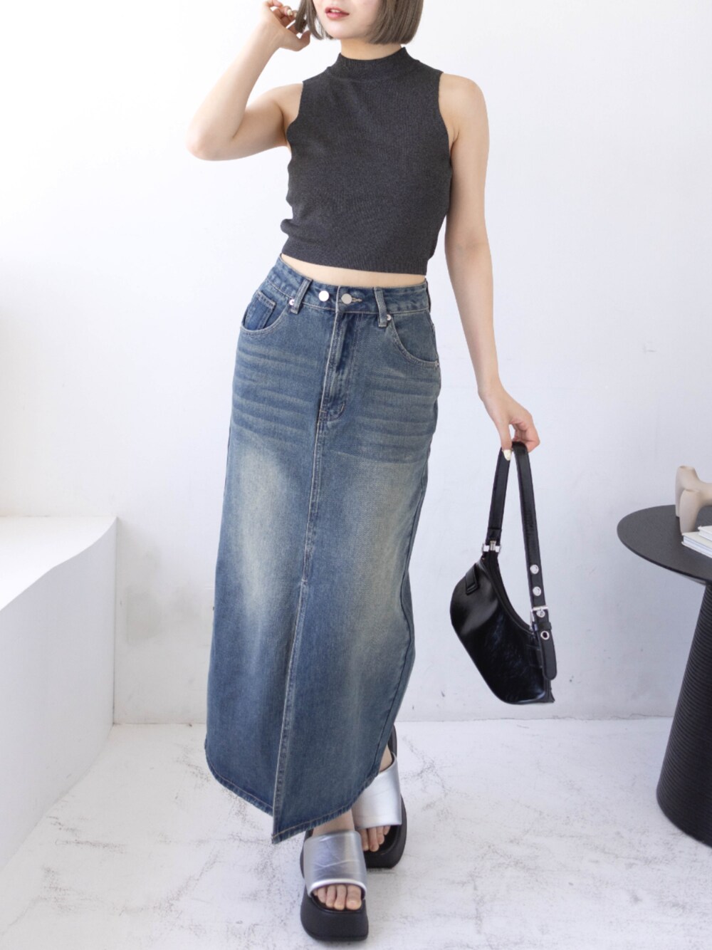 clear(クリア)(clear)のデニムスカート「スリット入りデニムスカート [美シルエット ヴィンテージライク カジュアル]≪再入荷≫」を使ったコーディネート