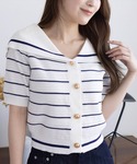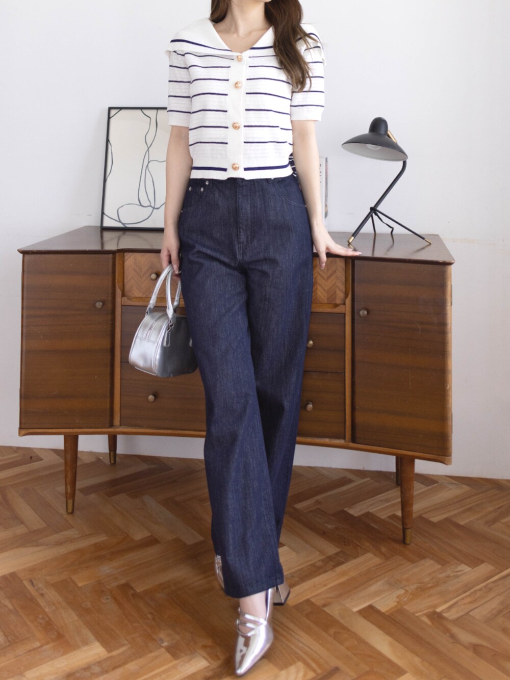 セーラーカラー×ボーダーで爽やかマリン風♪ 濃色デニムを合わせて、きちんと感も◎ シルバー小物でトレンド感をプラスしました✨