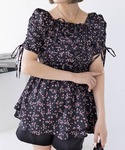 小花柄トップスで王道ガーリー♡ ドロストデザインとふんわりシルエットがフェミニン度UP。 ブラック小物で全体を引き締めて、大人っぽさも忘れずに♪