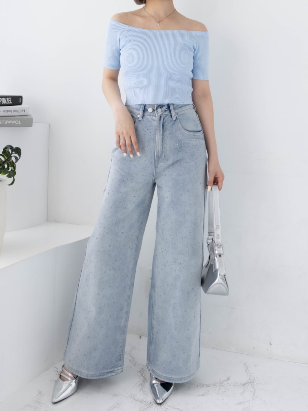 clear(クリア)(clear)のデニムパンツ「【低身長サイズ有】ラインストーン付きヴィンテージワイドデニムパンツ [ヴィンテージライク キラキラ]≪2025SS新作≫」を使ったコーディネート