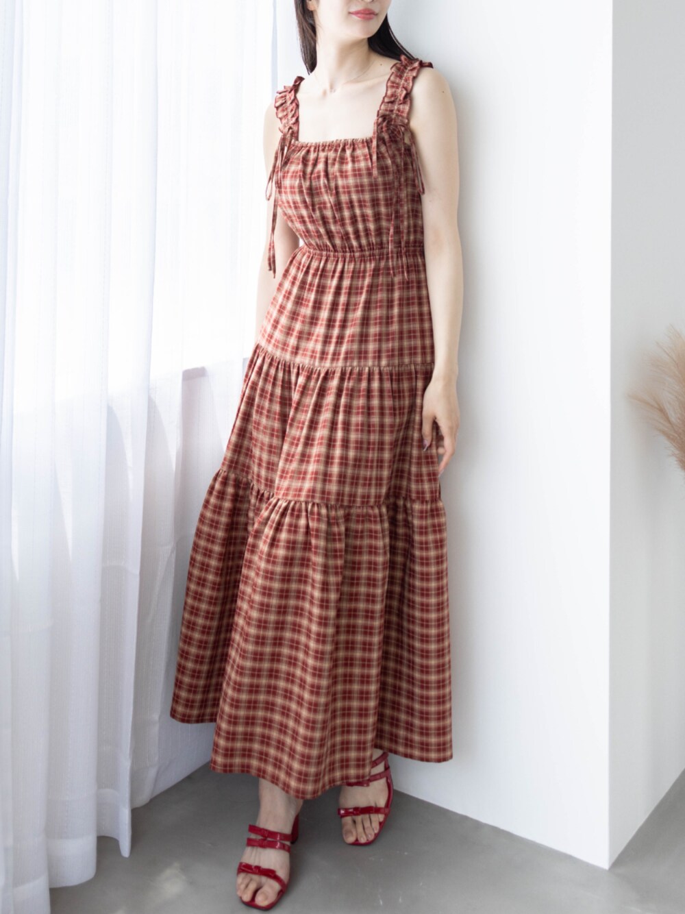 夏に合うレッドチェックのワンピースです。 落ち着いたカラーなので着回しも抜群!
