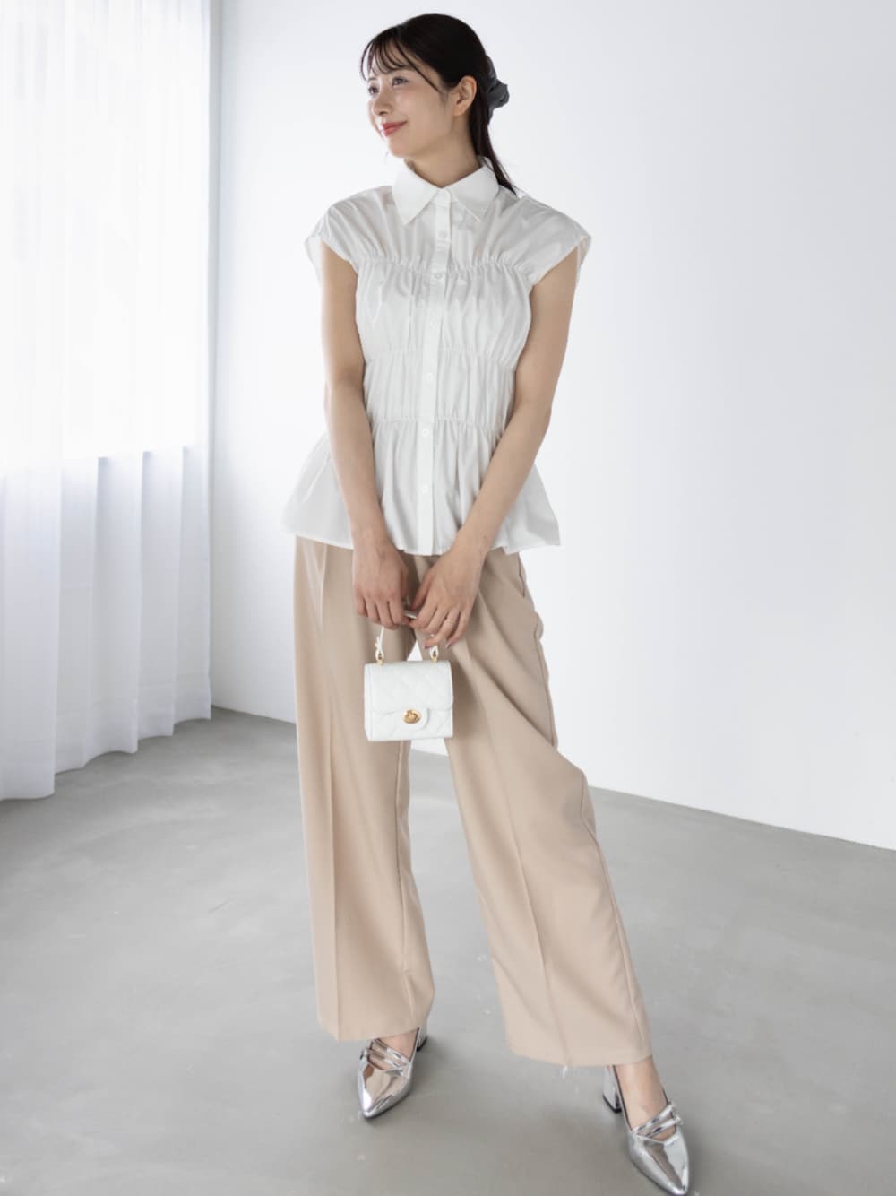 clear(クリア)(clear)のスラックス「【低身長サイズ有】ワンタックストレートパンツ[骨格ストレート オフィスカジュアル セットアップ可能]≪2025SS新作≫」を使ったコーディネート