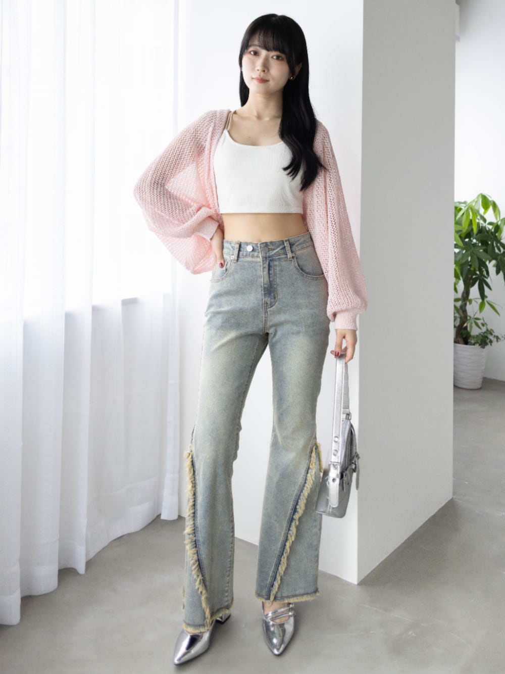 淡いピンクとライトブルーのデニム合わせが 最高にかわいい! 韓国オンニ風スタイルです♪