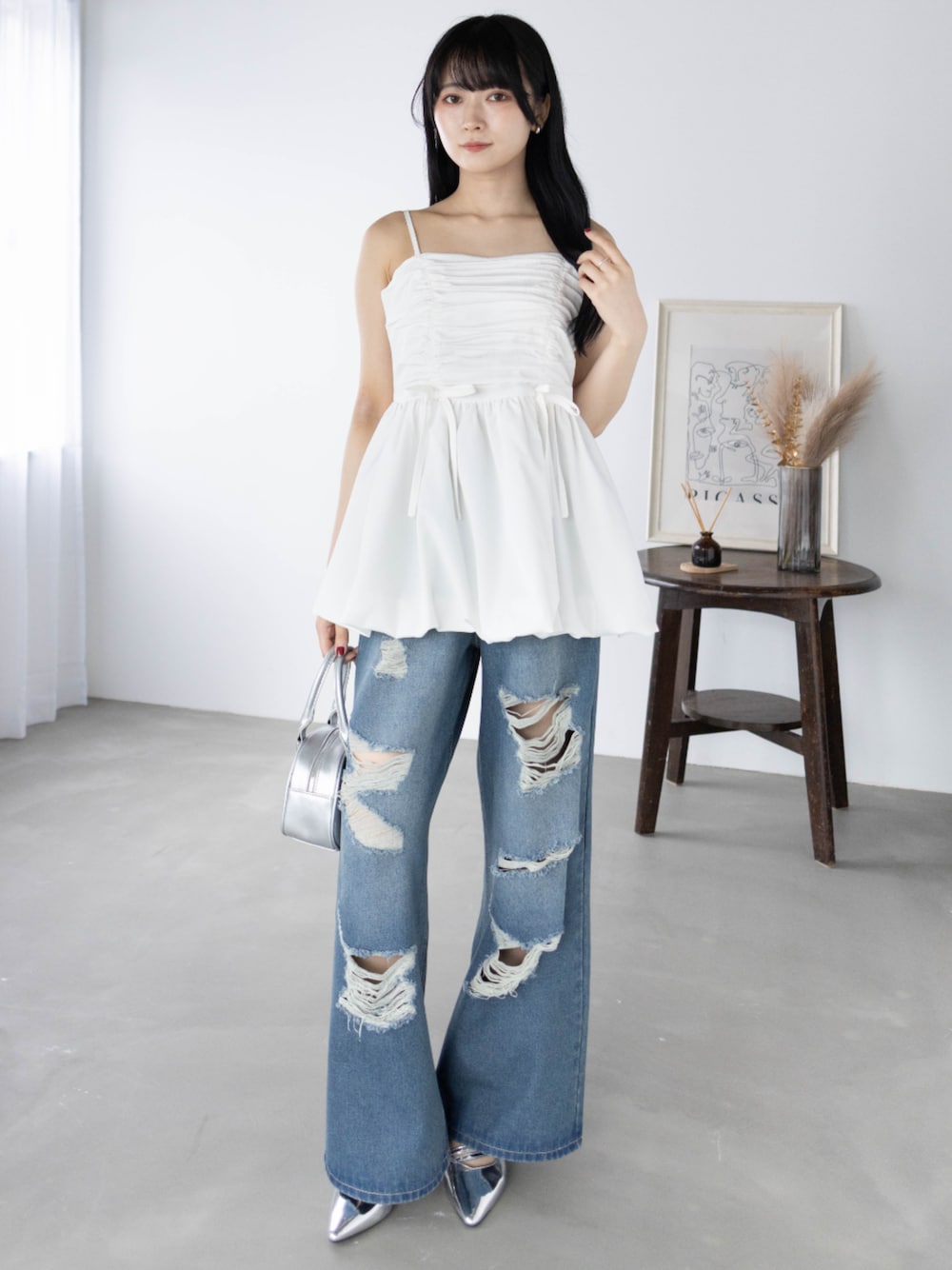 ガーリーとカジュアルをミックスした 甘辛コーディネートです♪