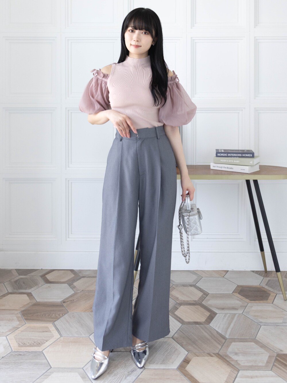clear(クリア)(clear)のスラックス「【低身長サイズ有】ワンタックストレートパンツ[骨格ストレート オフィスカジュアル セットアップ可能]≪2025SS新作≫」を使ったコーディネート