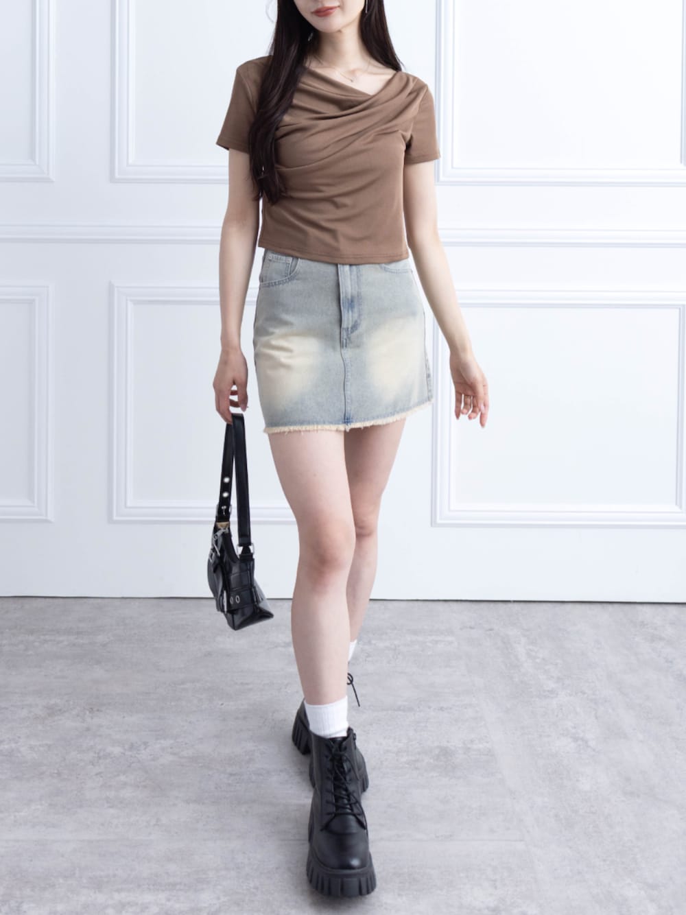 clear(クリア)(clear)のデニムスカート「台形デニムミニスカート[大人カジュアル 着回し抜群]≪SS新作≫」を使ったコーディネート