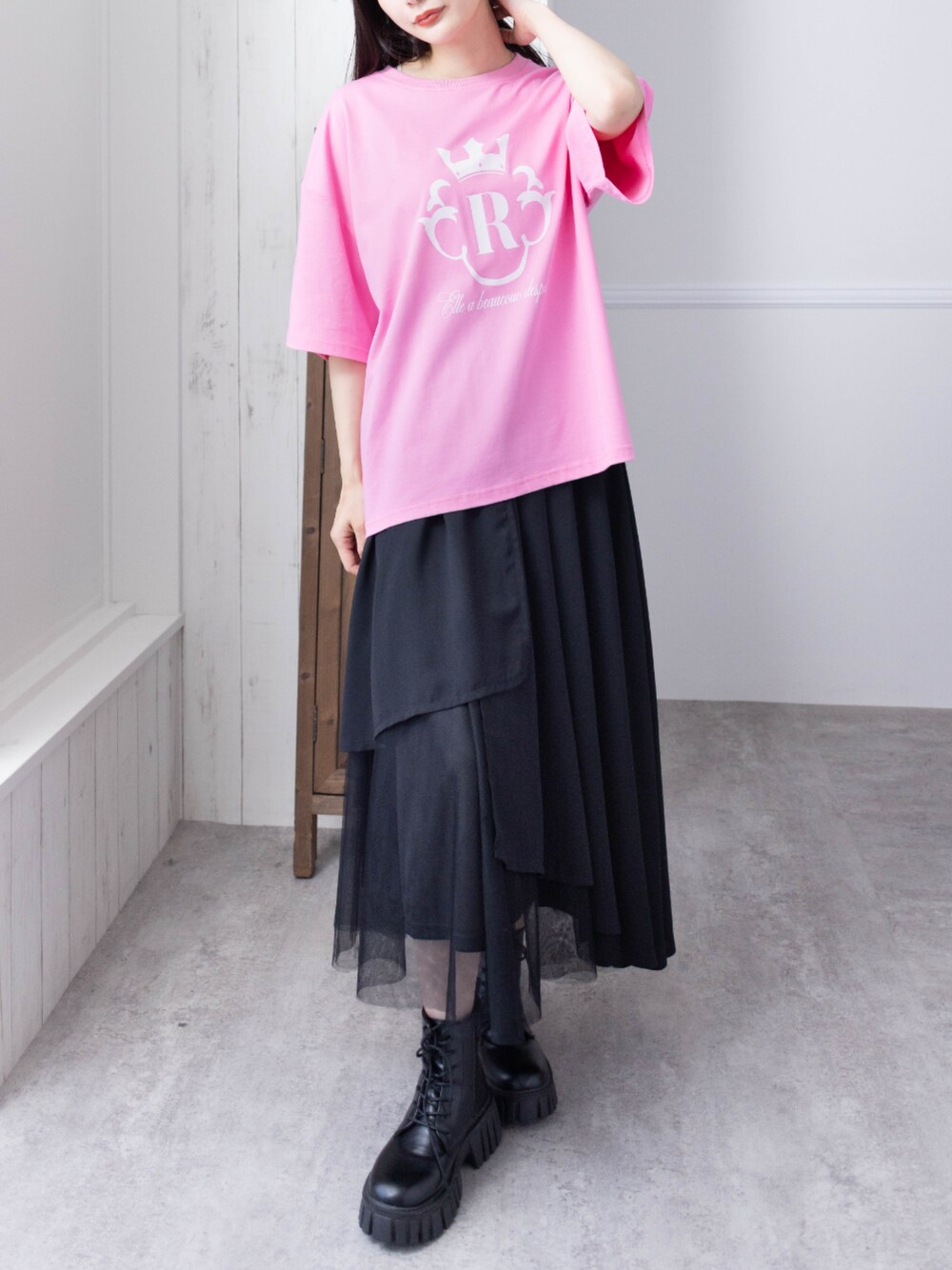 ピンクとブラックの甘辛ミックスコーデ♪
