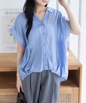 ブルーシャツ×グレースラックスで、 清潔感たっぷりのきれいめカジュアル♪ ゆったりシルエットでこなれ感も忘れず◎