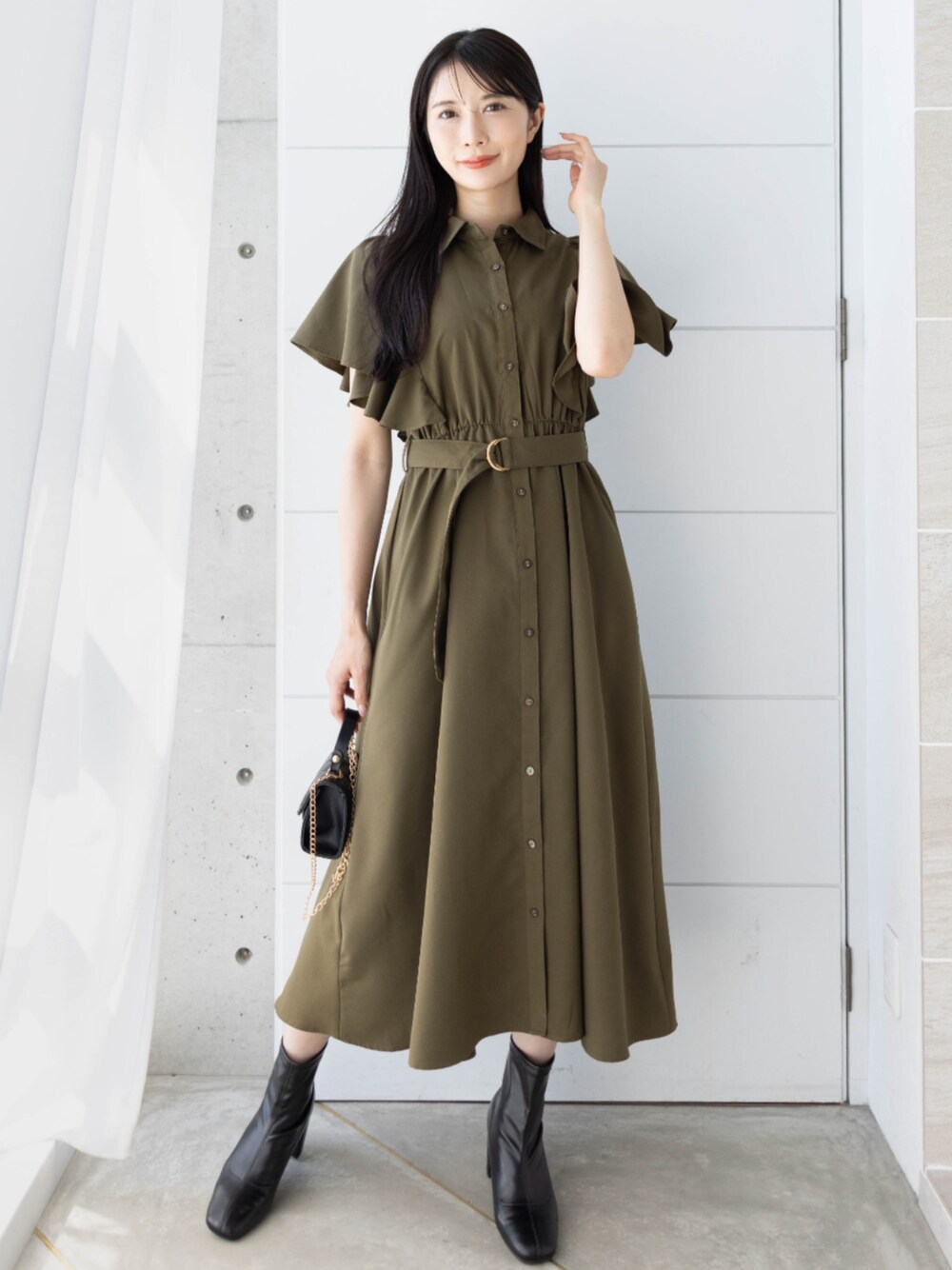 ウエストマークできるシャツワンピでスタイルアップ◎ 落ち着きカラーだから秋先取りコーデにもぴったり!