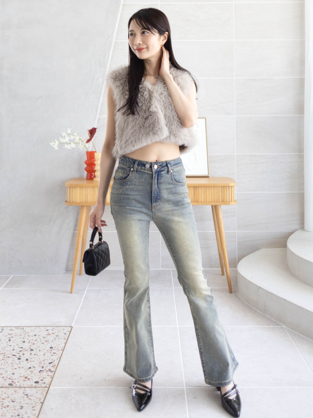 ファーベスト×ラメデニムで大人カジュアル コンパクトなシルエットでスタイルアップも狙えます!