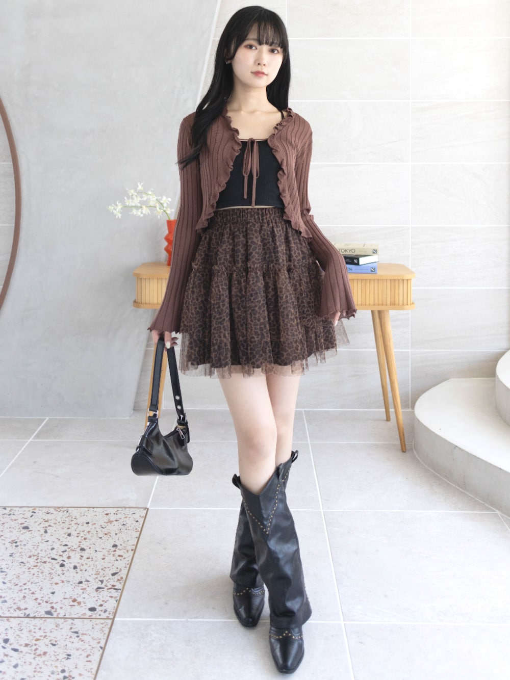 ガーリーだけどレオパードで甘辛な印象になれるブラウンコーデ♪
