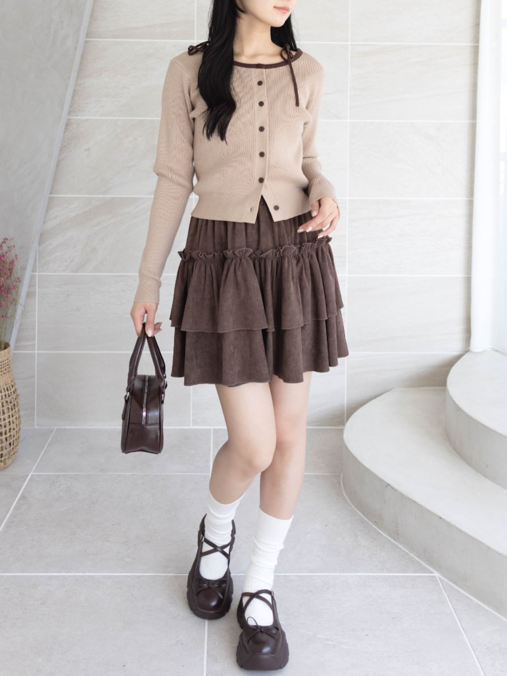 ベージュとブラウンのワントーンコーデが 柔らかく温もりのある印象を引き立てています。