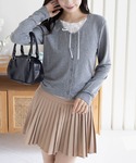 グレーカーデ×プリーツスカートで上品ガーリーに