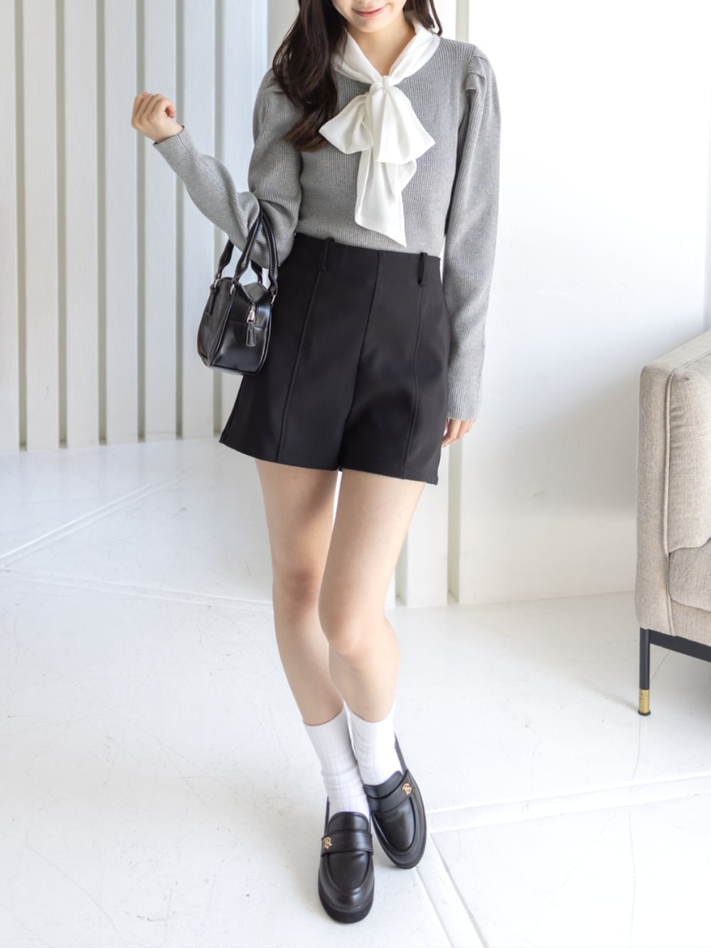 リボンタイがポイントのガーリーなモノトーンコーデ。 上品で可愛い♡