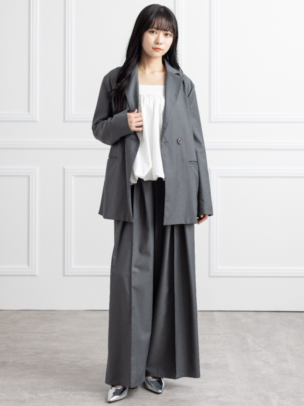 オーバージャケットとバルーントップスのレイヤードコーデ ゆるシルエットで抜け感のある大人カジュアルに