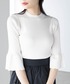 優しいベージュに白の袖フリルで清楚な抜け感