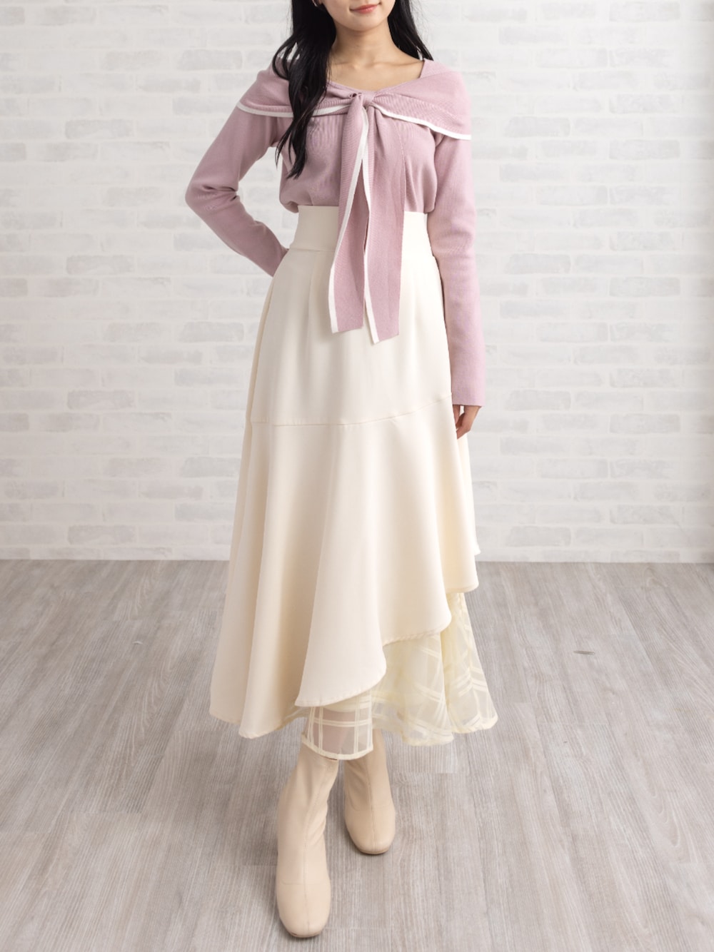 セーラーデザインが甘さを添える大人フェミニンコーデ
