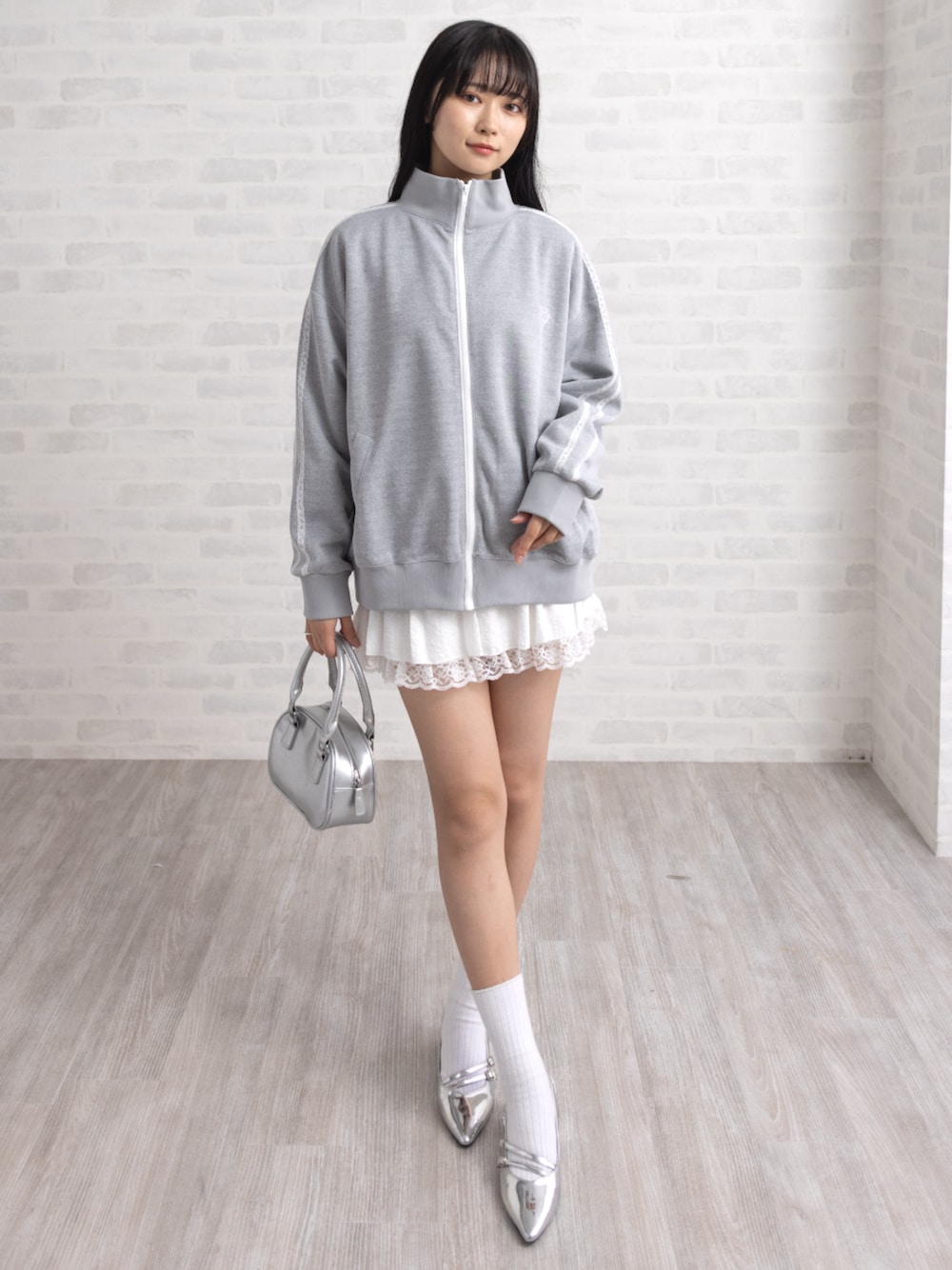 インナーの白レースミニスカートが フェミニンさを引き立て、軽やかな雰囲気に