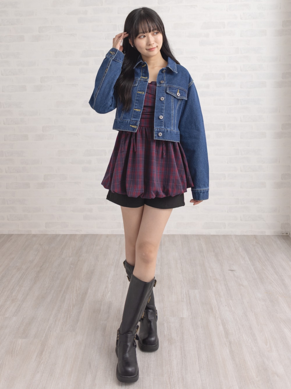 デニムジャケットで甘辛ミックスをカジュアルダウン