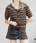 ブラウンのセットアップにストライプ柄が映える クラシカルでガーリーな初秋コーデ