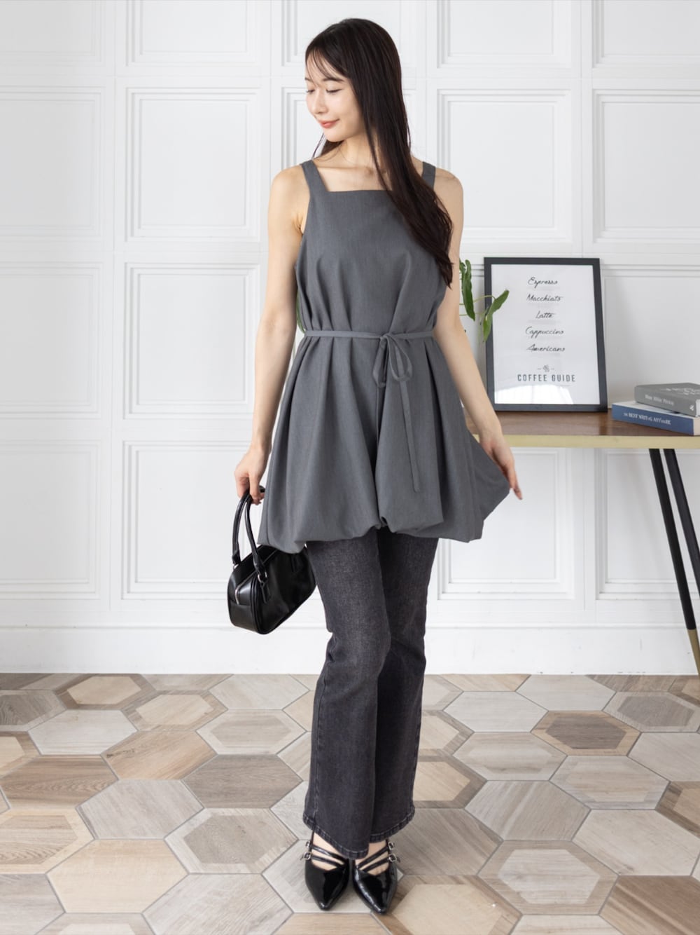 ワンピにデニムを重ねた洗練カジュアルコーデです